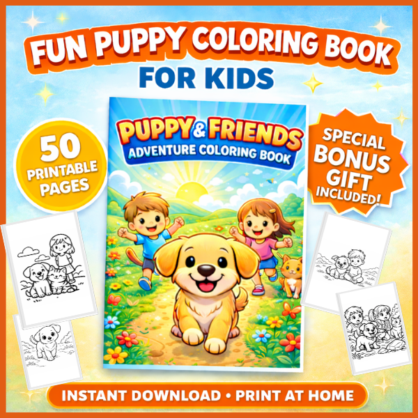 Puppy Activity Pages for Kids β 50 Printable Dog & Friends Art Sheets