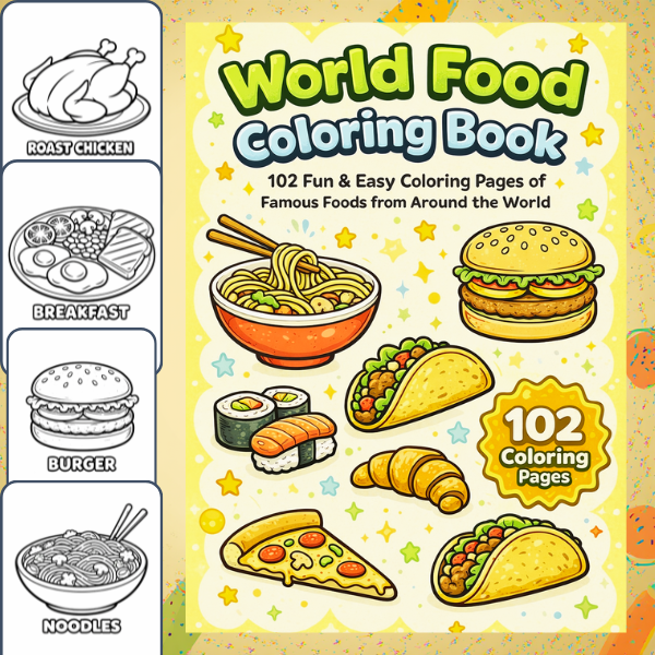 World Food Coloring Book for Kids β 102 Printable Pages (PDF)