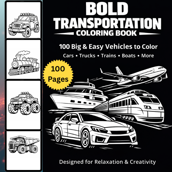 Transportation Coloring Book β 100 Easy Vehicle Coloring Pages (PDF)
